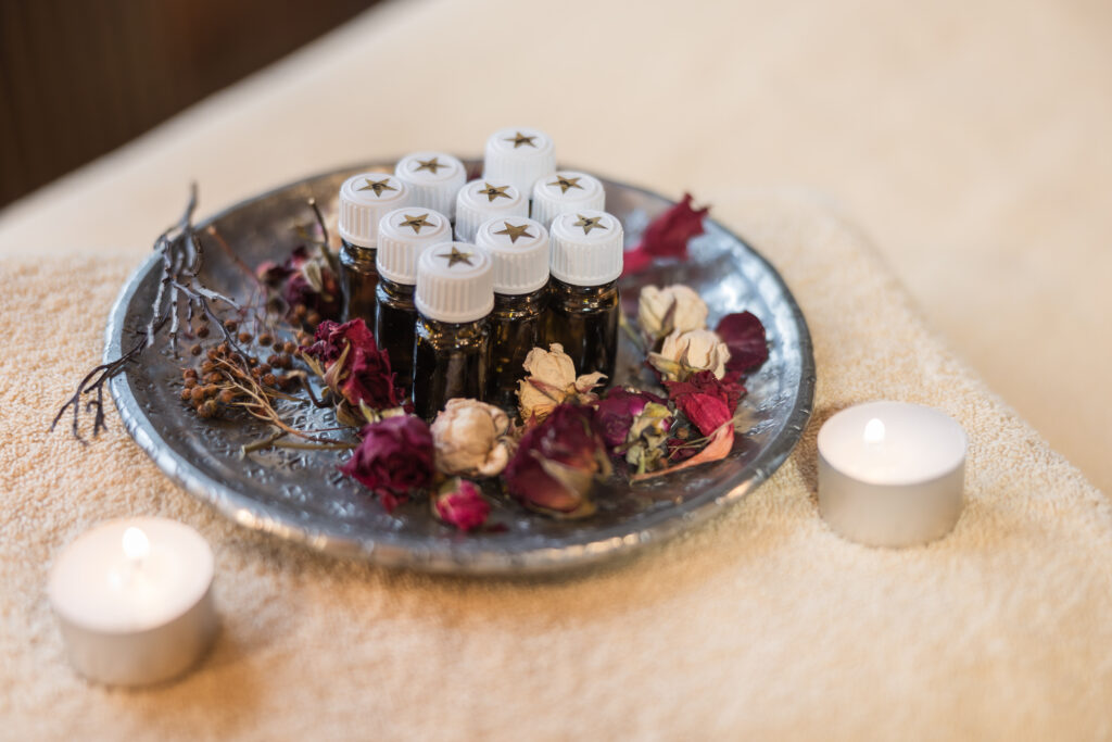 Die Duftmassage ist eine sanfte Streichmassage die an Rücken, Händen und Füssen mit wohlduftenden ätherischen Ölen ausgeführt wird. Die verschiedenen ätherischen Öle mit ihren spezifischen Wirkungsweisen werden auf die Haut und somit auf die entsprechenden Chakras aufgetragen und entfalten so ihre Wirkung. Das besondere an ätherischen Ölen ist, dass sie unsere Gefühlsebene positiv beeinflussen können. Das Wort „Chakra“ kommt aus dem Sanskrit und bedeutet Rad. Jedes Chakra dreht sich energetisch wie ein Rad. Ist diese Energie aus ihrer Harmonie gelaufen, können Unwohlsein und längerfristig Krankheiten entstehen. Gleichmässige sanfte Streichungen lassen Körper, Geist und Seele entspannen und in Ruhe und Stille eintauchen.